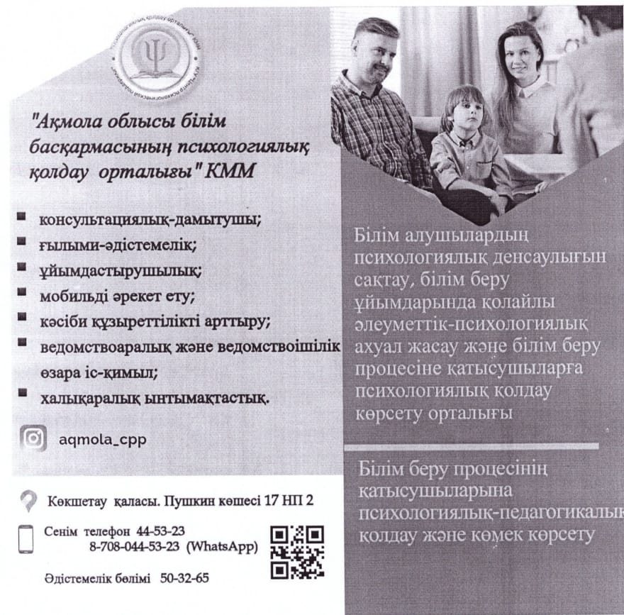 "Ақмола облысы білім басқармасының психологиялық қолдау орталығы "КММ