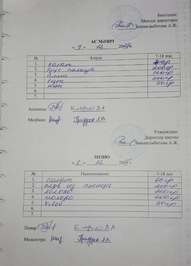 1 желтоқсан ас мәзірі