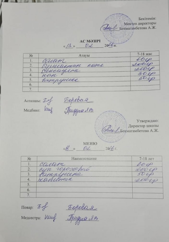 13 ақпан ас мәзірі