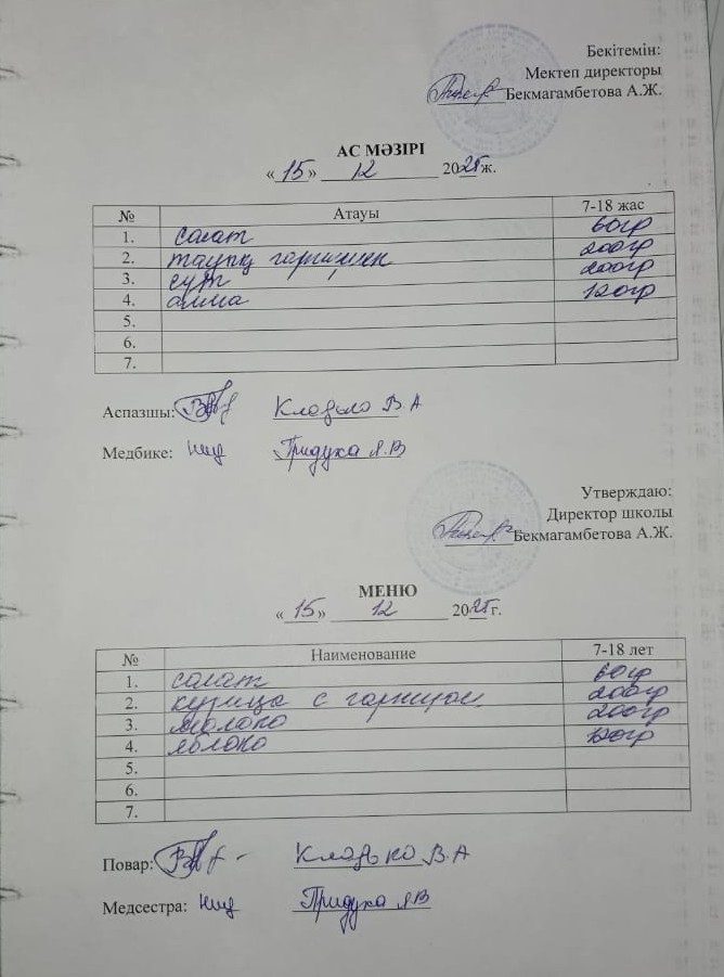 15 желтоқсан ас мәзірі
