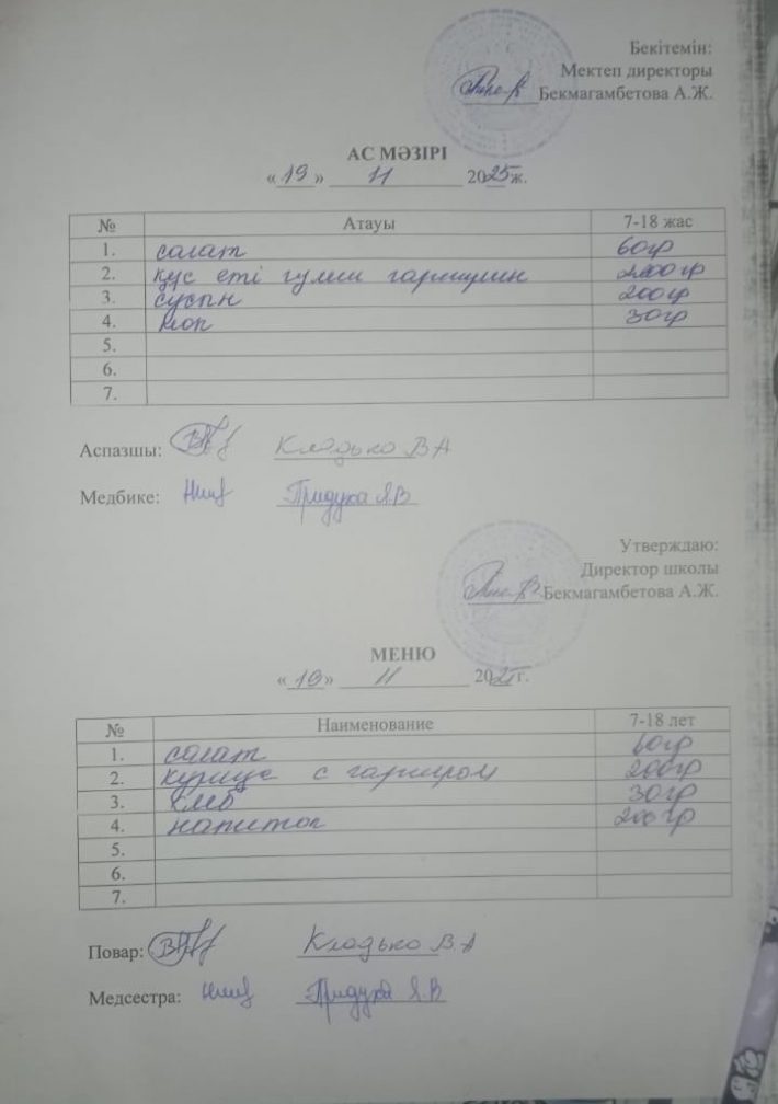 19 қараша ас мәзірі