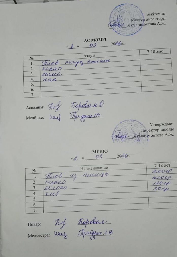 2 наурыз ас мәзірі