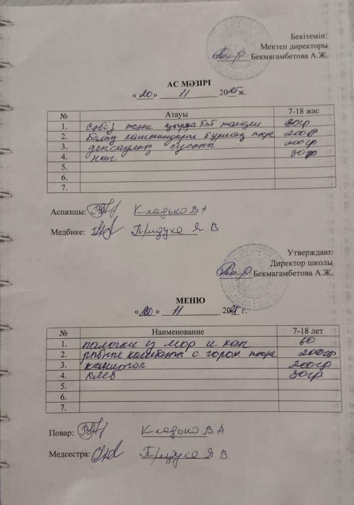 20 қараша ас мәзірі