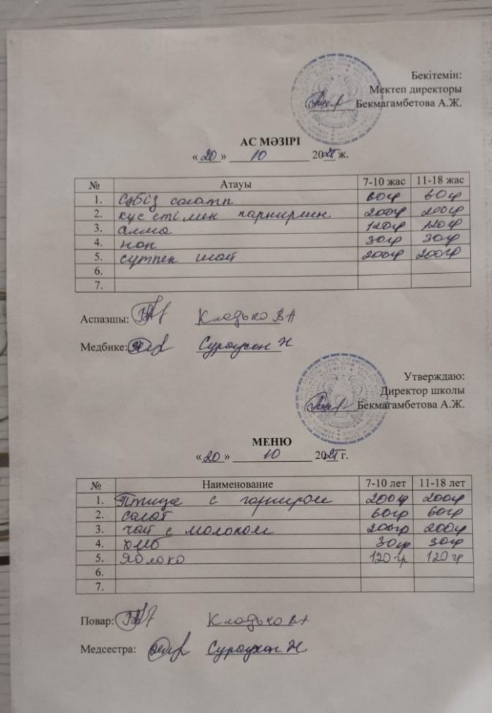 20 қазан ас мәзірі