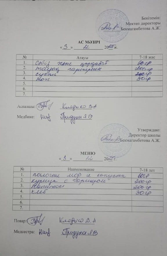 3 желтоқсан ас мәзірі
