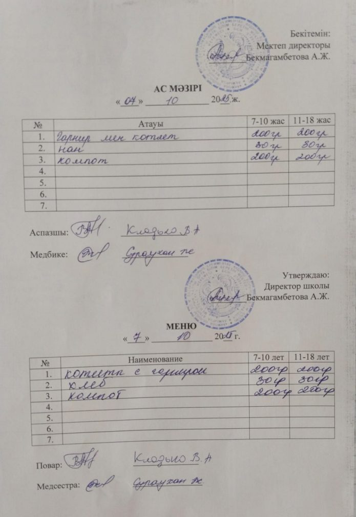 7 қазан ас мәзірі