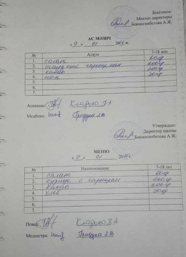 9 қаңтар ас мәзірі